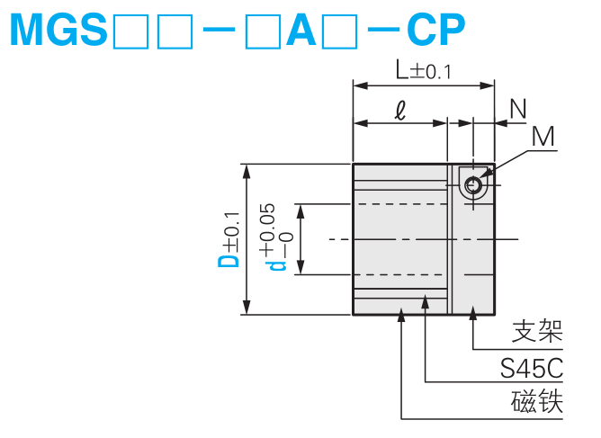| MGS | 21 | 06P | 8、10、12 | A為6061鋁,S為不銹304 | 增強型為C,普通型為X | CP(夾緊型) | 0.13 | 26 | 15 | 5.5 | M2 | 正常為0-80度,可定做150度 |